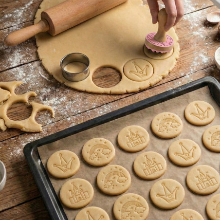 Transformez vos moments pâtisserie en véritable conte de fées ! Avec ce tampon biscuits Princesse, réalisez facilement de délicieux sablés décorés qui feront briller les yeux des enfants. Grâce à ses 3 empreintes différentes, amusez-vous à créer des biscuits variés et avec l’emporte-pièce rond découpez la pâte facilement pour un rendu net, joli et surtout… irrésistible à croquer !